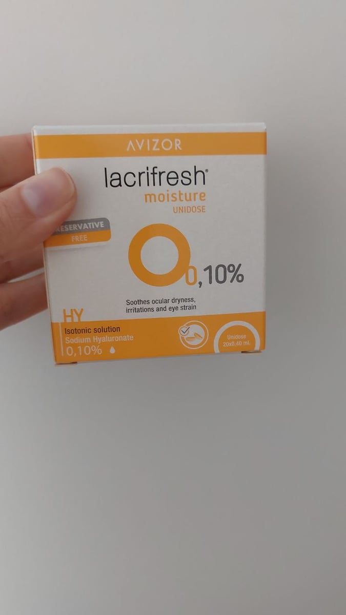 A Lacrifresh 0,10% é uma lágrima artificial em formato unidose, sem conservantes, formulada com hialuronato de sódio para proporcionar uma hidratação ocular suave e eficaz. Ideal para uso frequente ao longo do dia, oferece conforto imediato e é totalmente compatível com todos os tipos de lentes de contacto, incluindo Ortho-K.